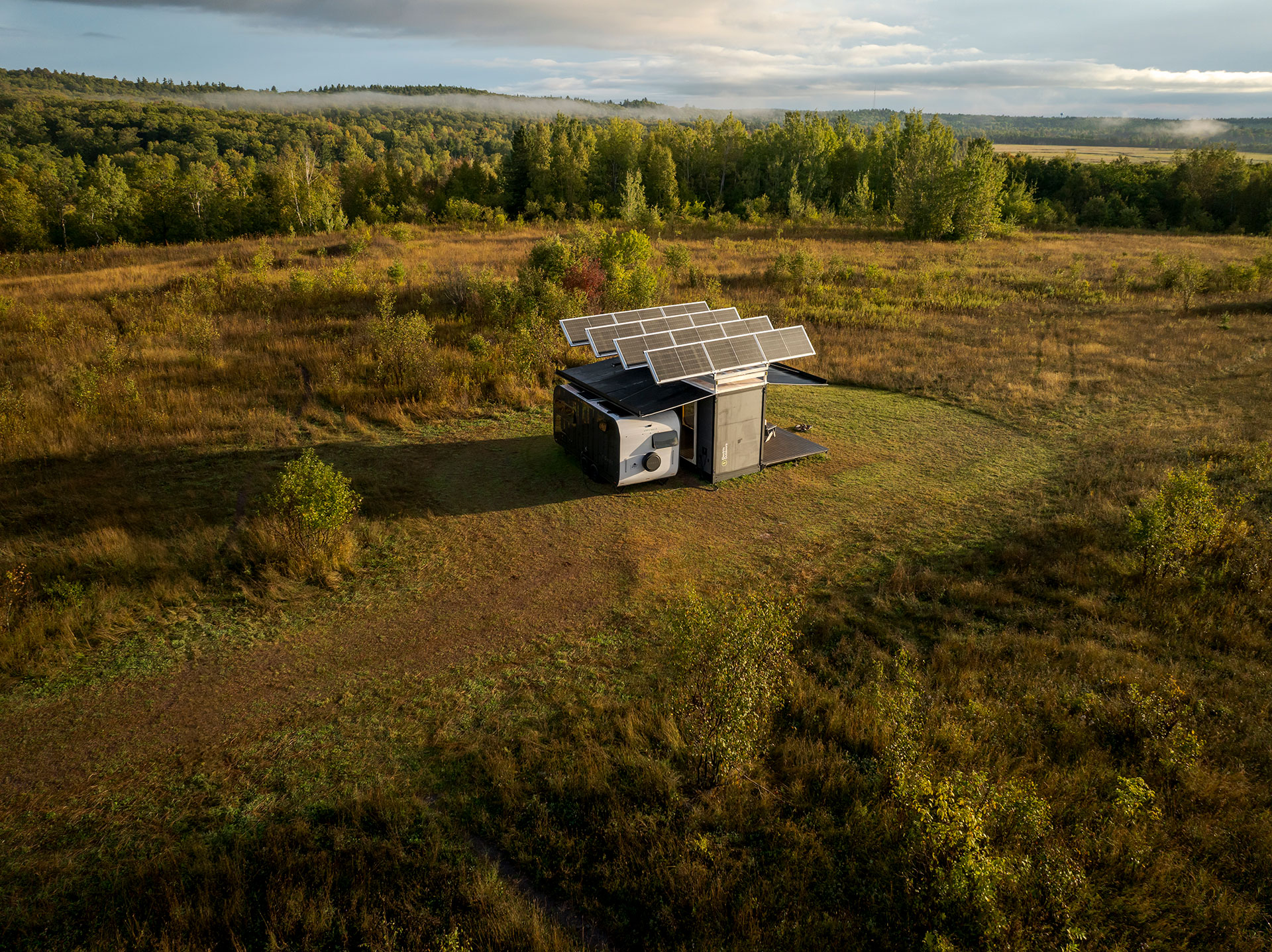Atmospheric water generation and purification for true off-grid operations. Options include a full wet bath, recirculating shower, and incineration toilet.